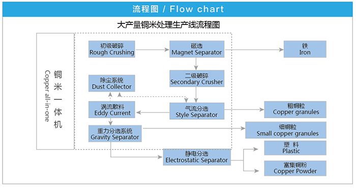 It is no need to sort the wasted wires manually in advance and it could separate the main cable and wire with low copper content.