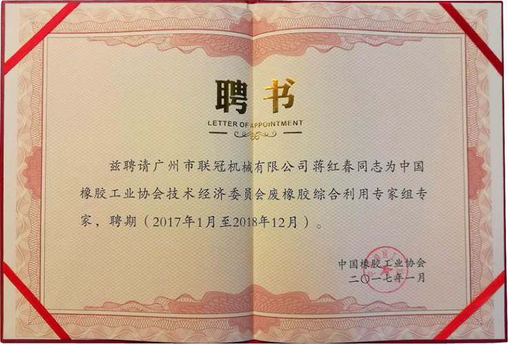 Congratulations!Mr. Jiang Hongchun has hired as an expert by Rubber Industry Association