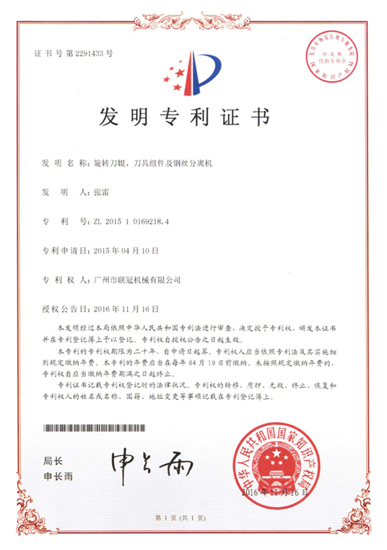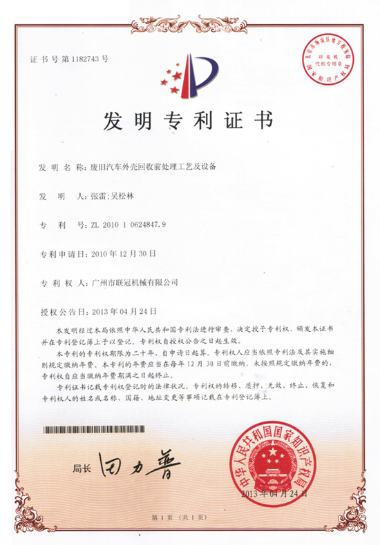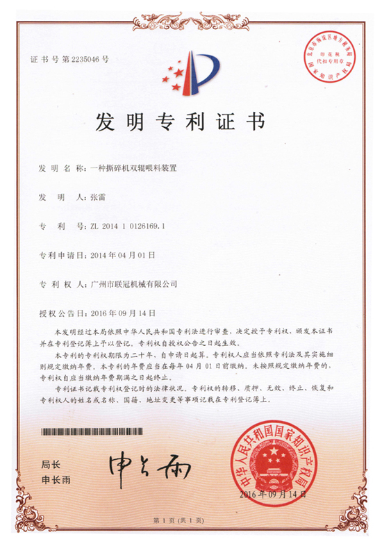 3E Machinery technical research and development team with R & D and accumulated over the years, from a simple "reverse innovation" -- a perfect appearance and a number of design patents; to the core technology of the continuous exploration and research -- "positive innovation", duly completed 3 national invention patents have been written to the record company, there are rotary knife roller, cutter assembly and wire separator (ZL201510169218.4), shredder double roller feeding device (ZL201410126169.1), the process and equipment of pretreatment of waste recycling car shell (ZL201010624847.9). In addition, there are more than 20 invention patents are being declared.